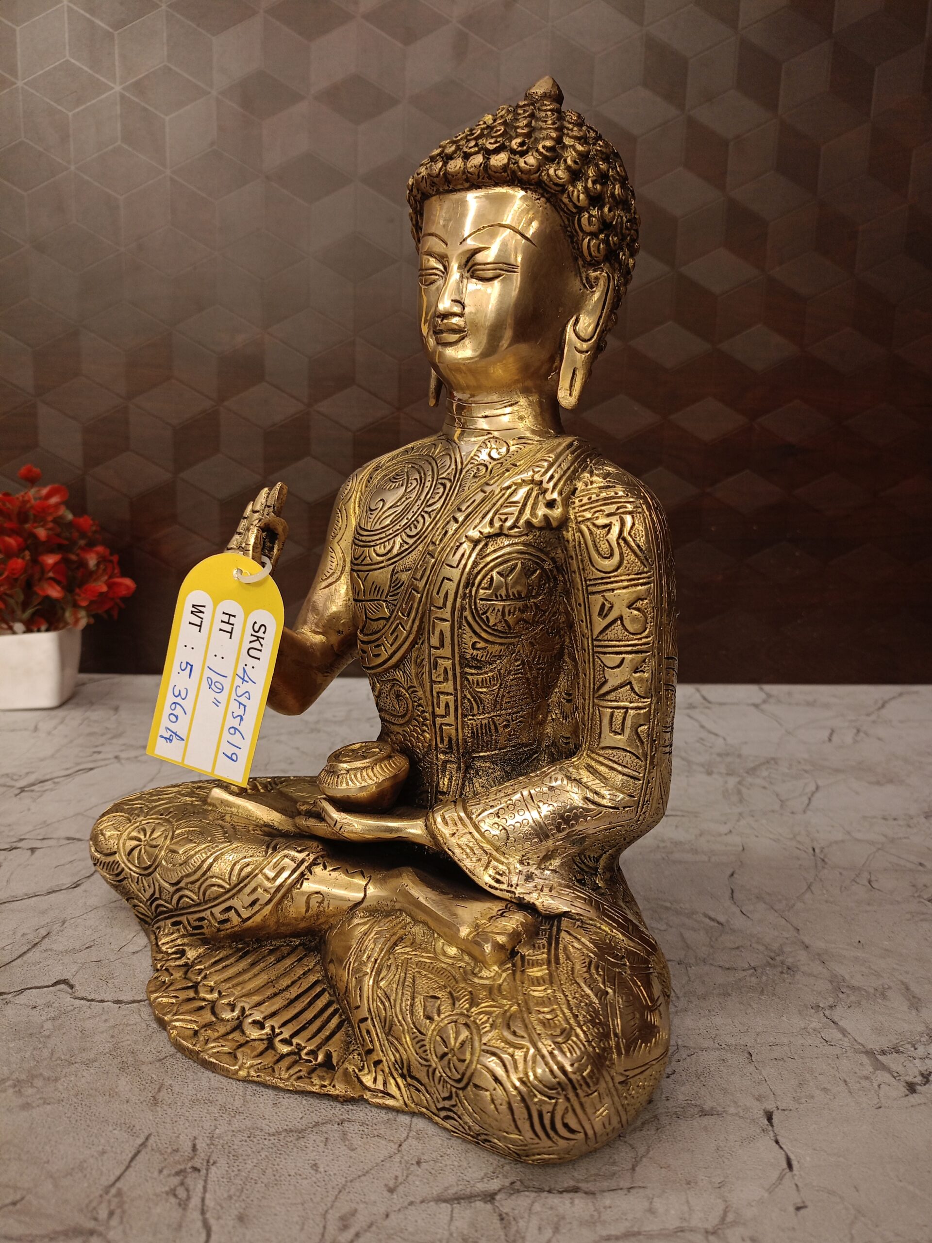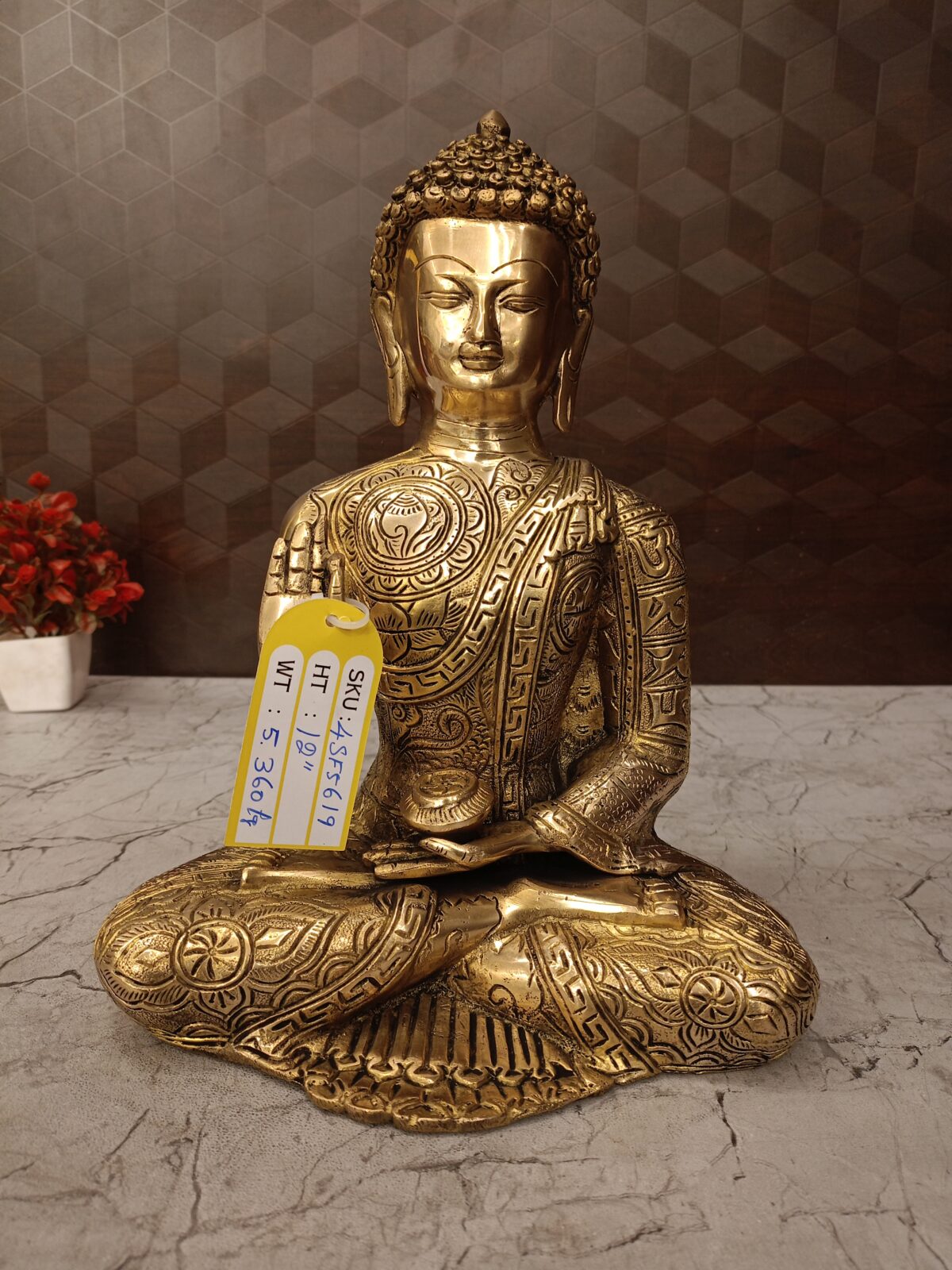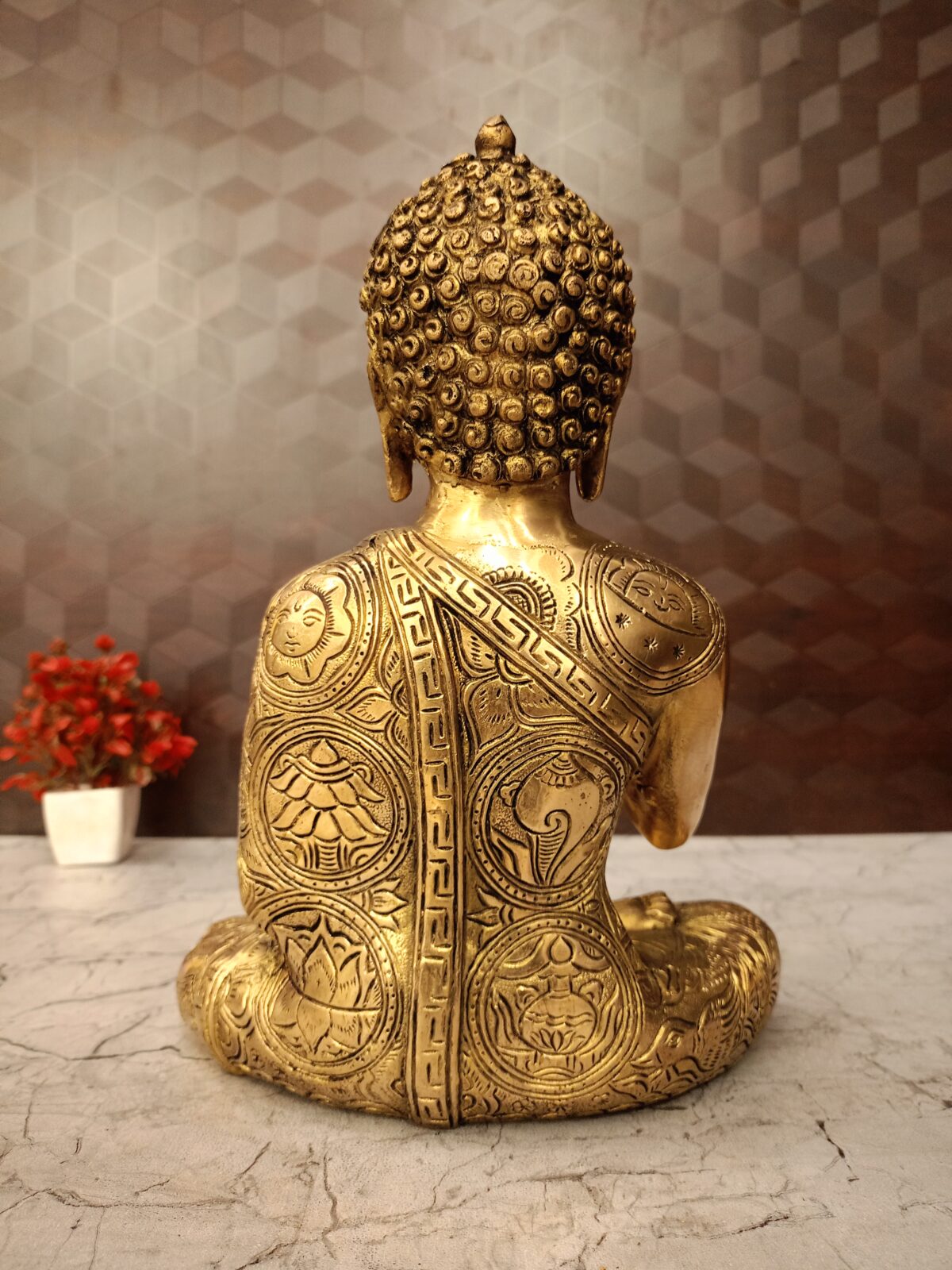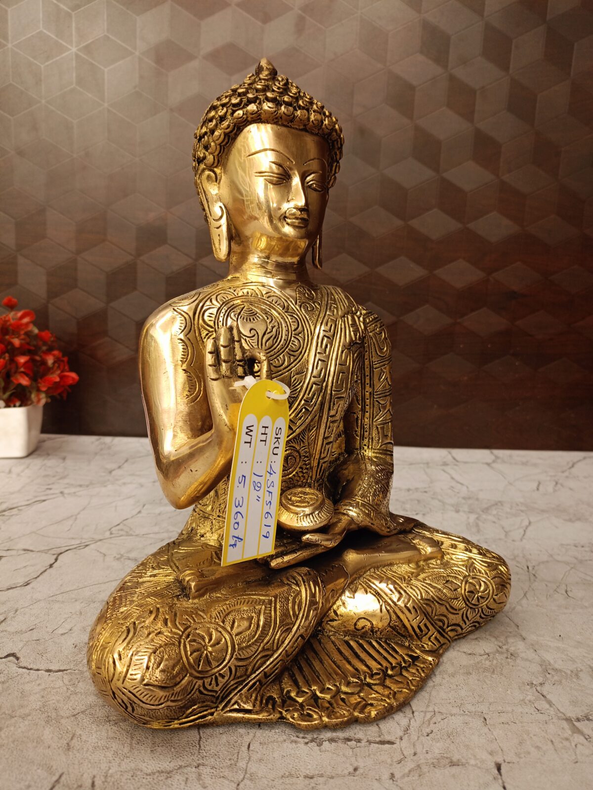 - Posture: The Buddha is seated in the full or half lotus position (Padmasana).