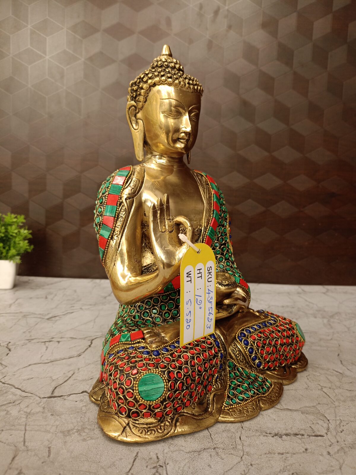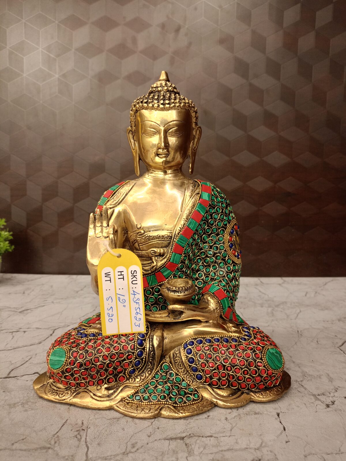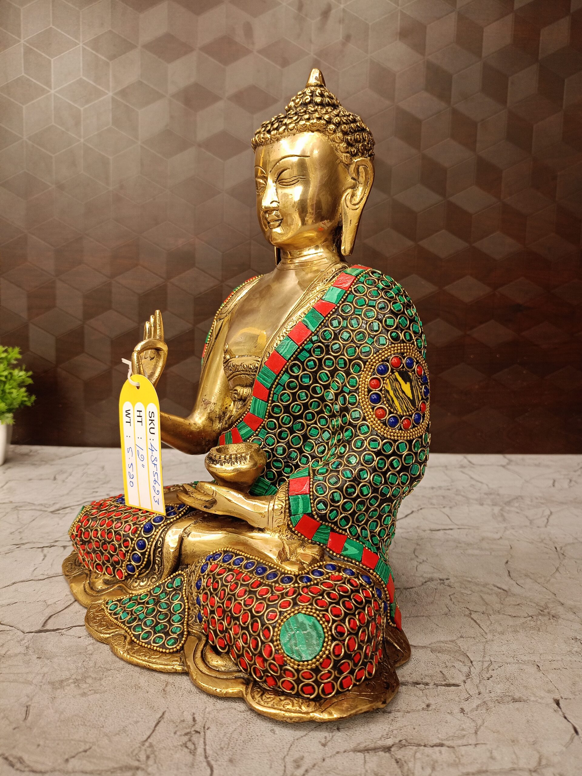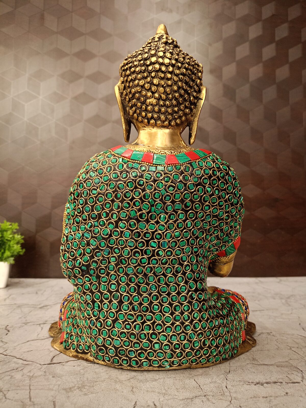 Charming Buddha stone work , Green And Red Finish :