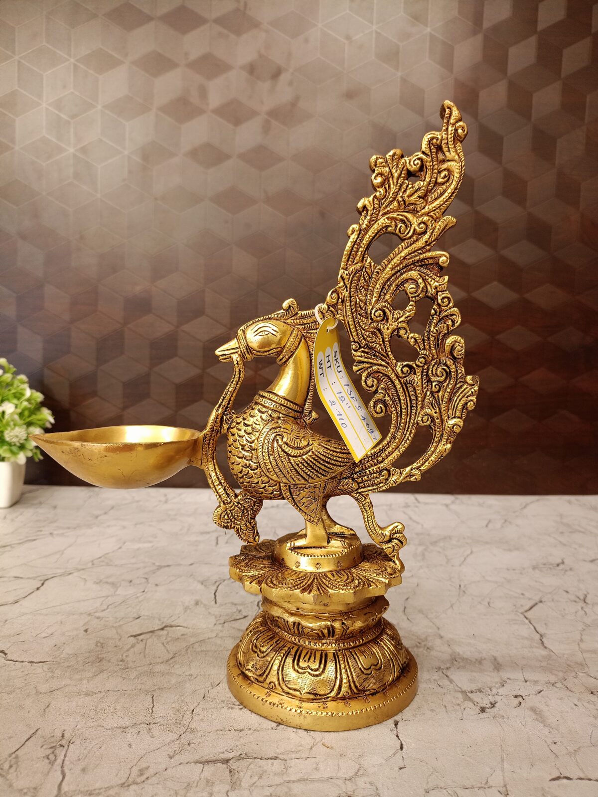 The Designer Peacock Diya you’ve shown, where the peacock is gracefully holding the lamp bowl ,