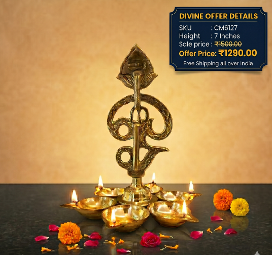 Choosing the Brass Om Vel with 6 Diyas 7 Inch adds both spiritual and aesthetic value to your home. It represents divine protection, removes negativity, and enhances positive energy.
