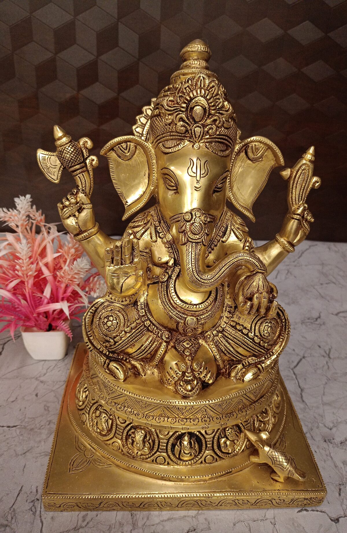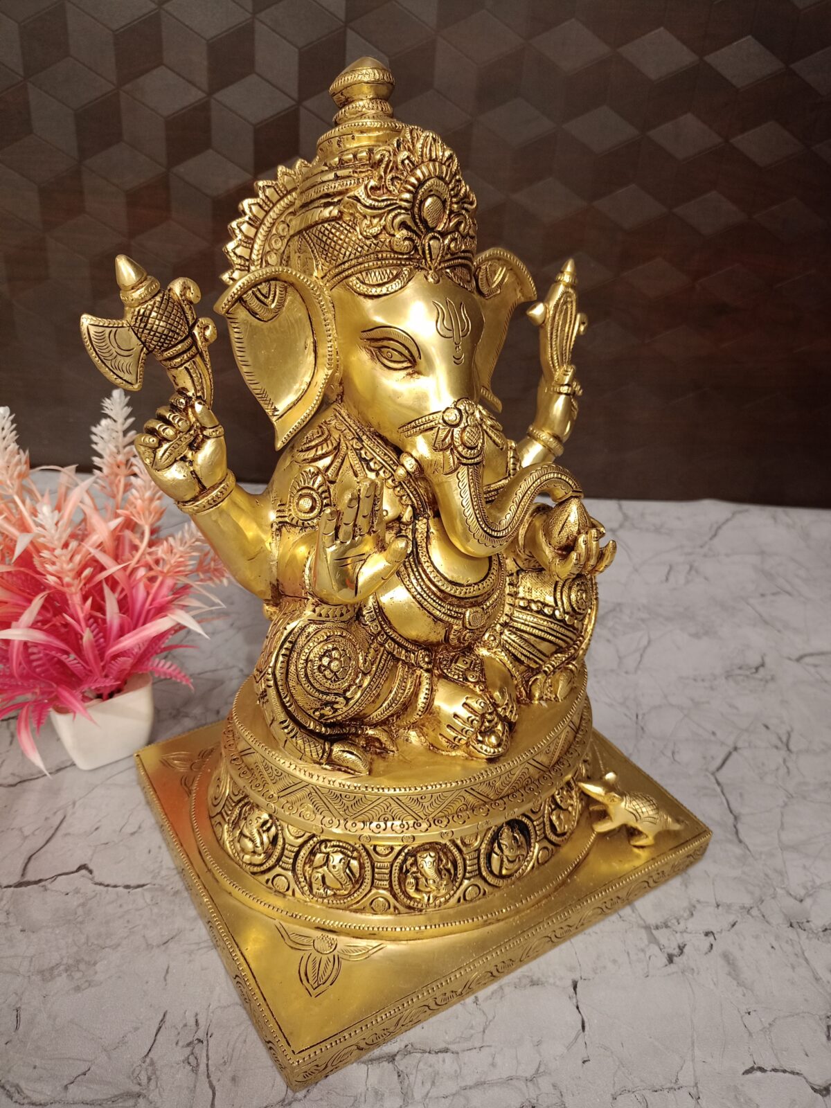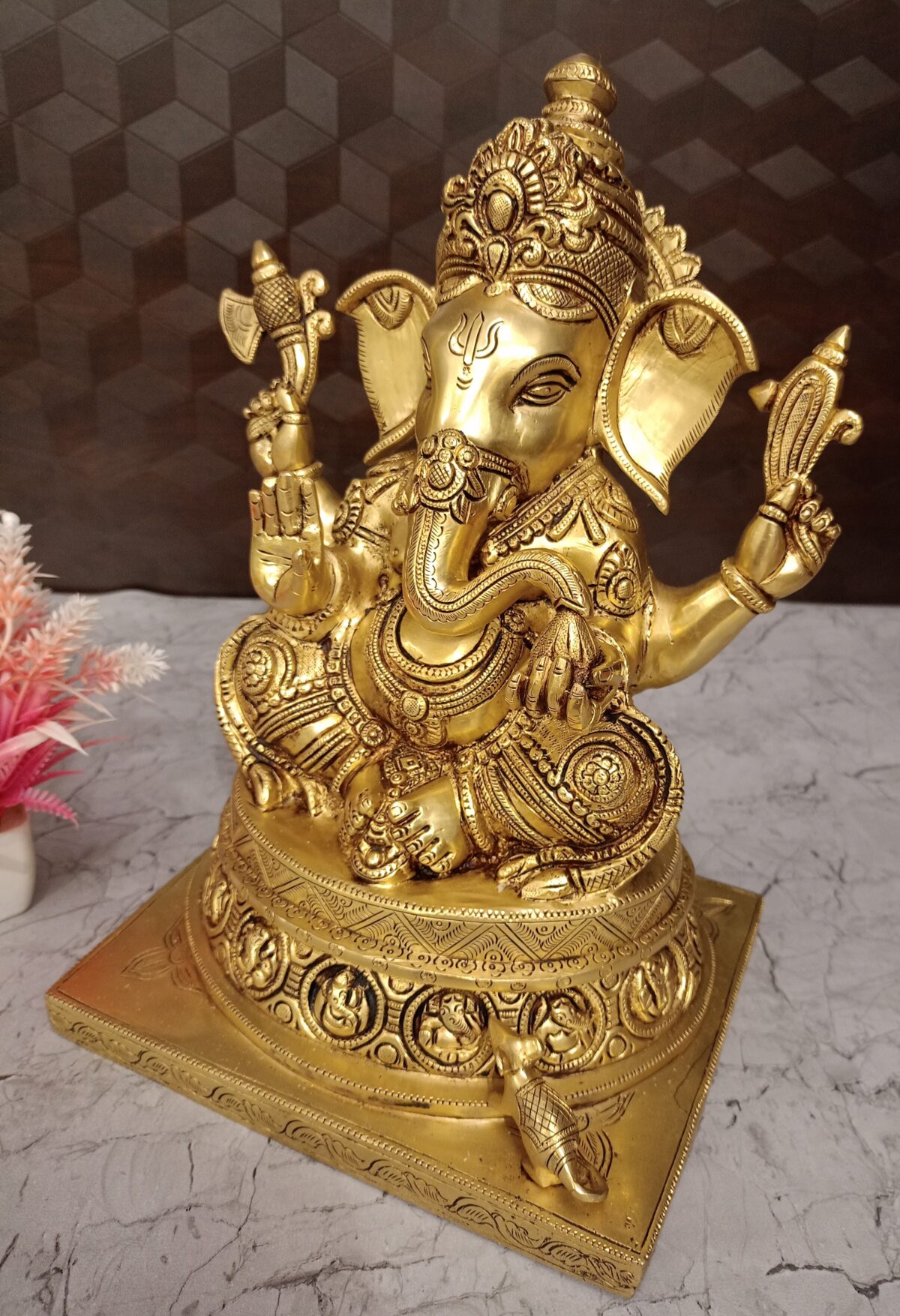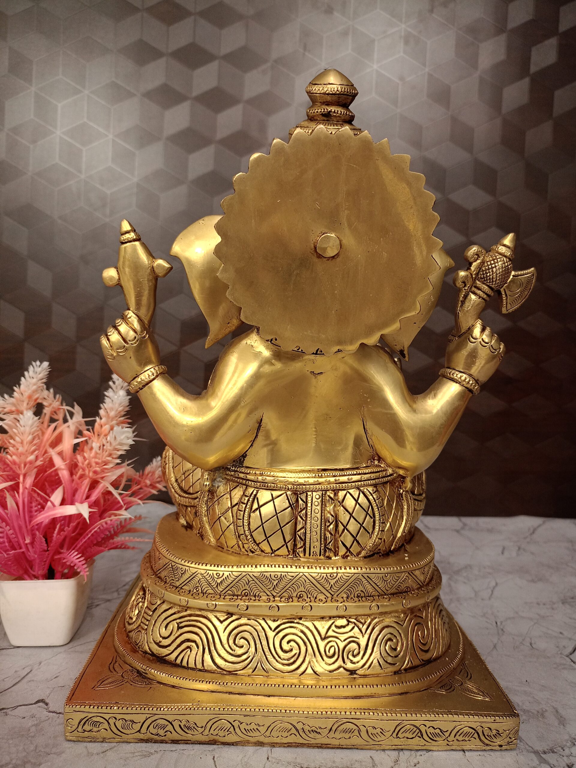 - Posture: Ganesha is shown in a seated posture, which symbolizes stability, calmness, and the removal of obstacles.