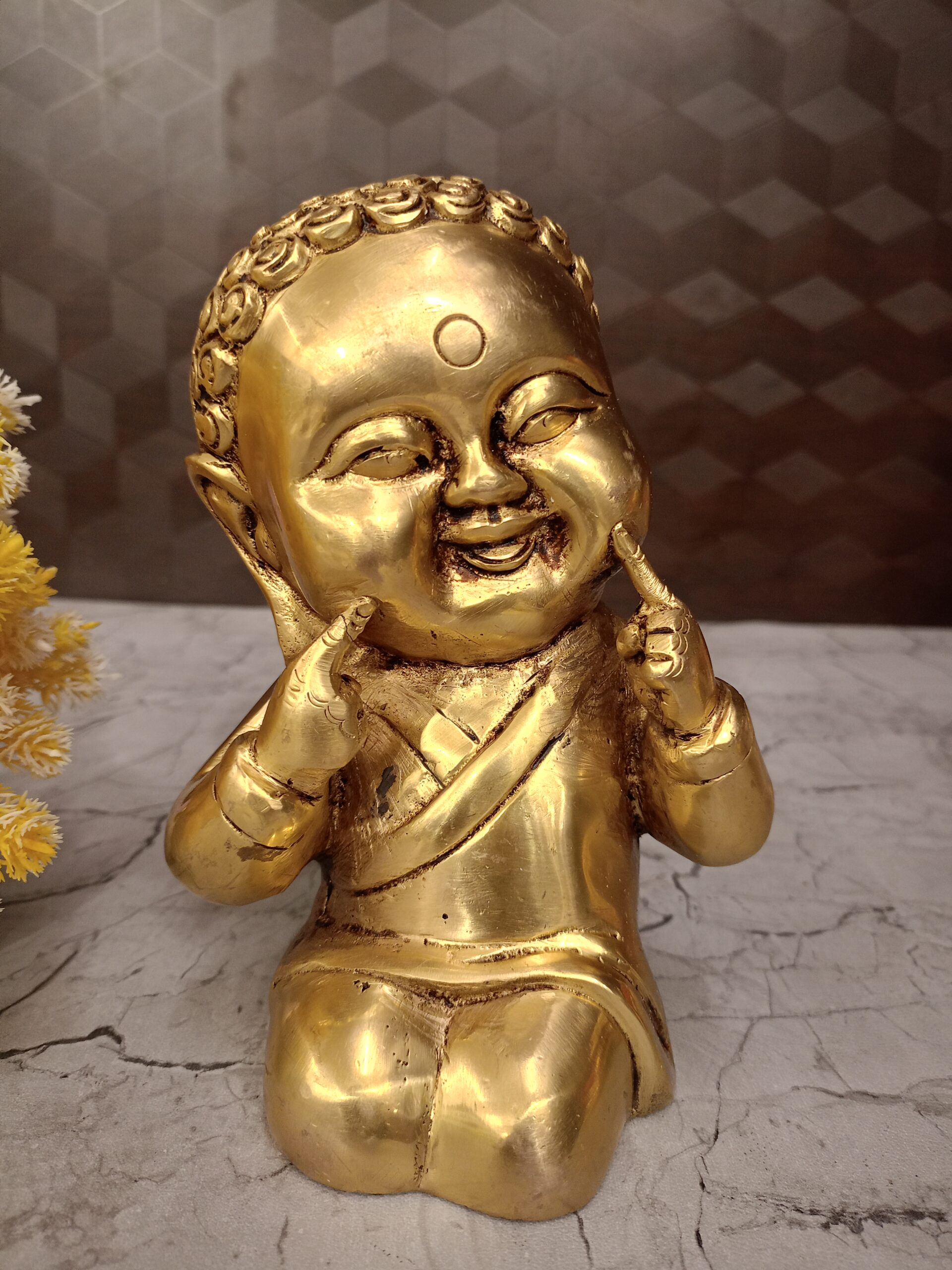 - Material (Brass/Gold Finish): The gold finish on brass symbolizes wealth, prosperity, and success, amplifying the statue’s ability to attract financial well-being.