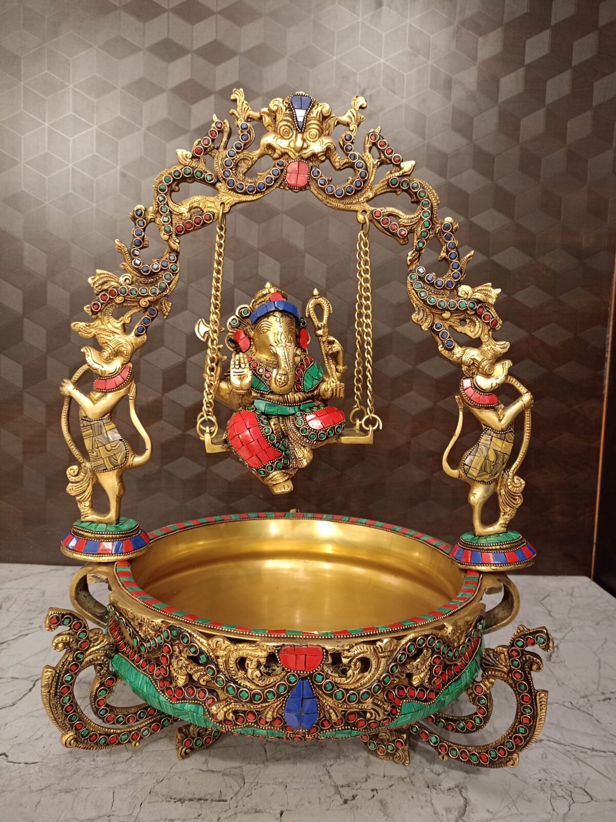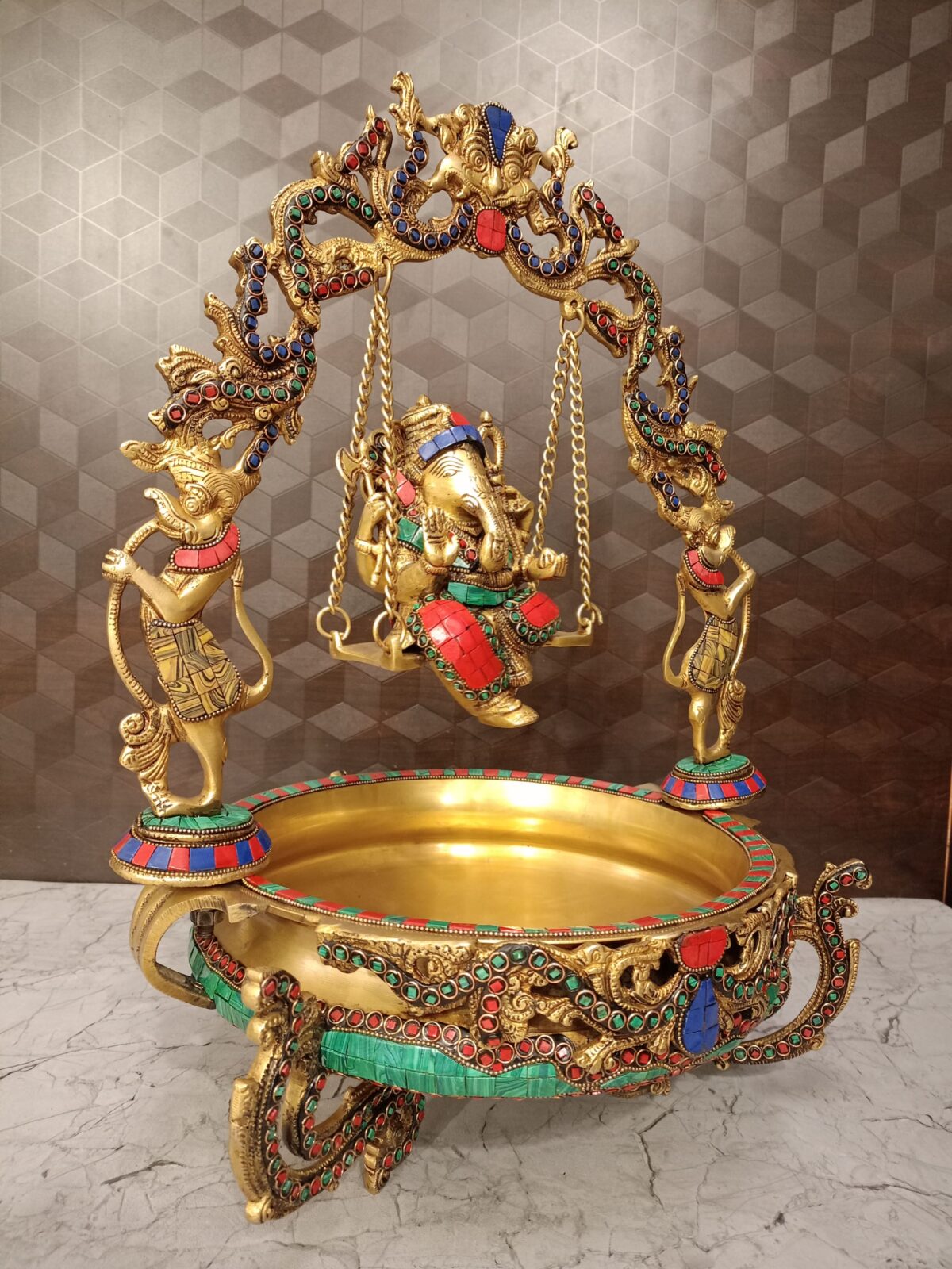 Buy Brass Stone Finish Uruli Swing Ganesha 21″ Handcraft & Antique