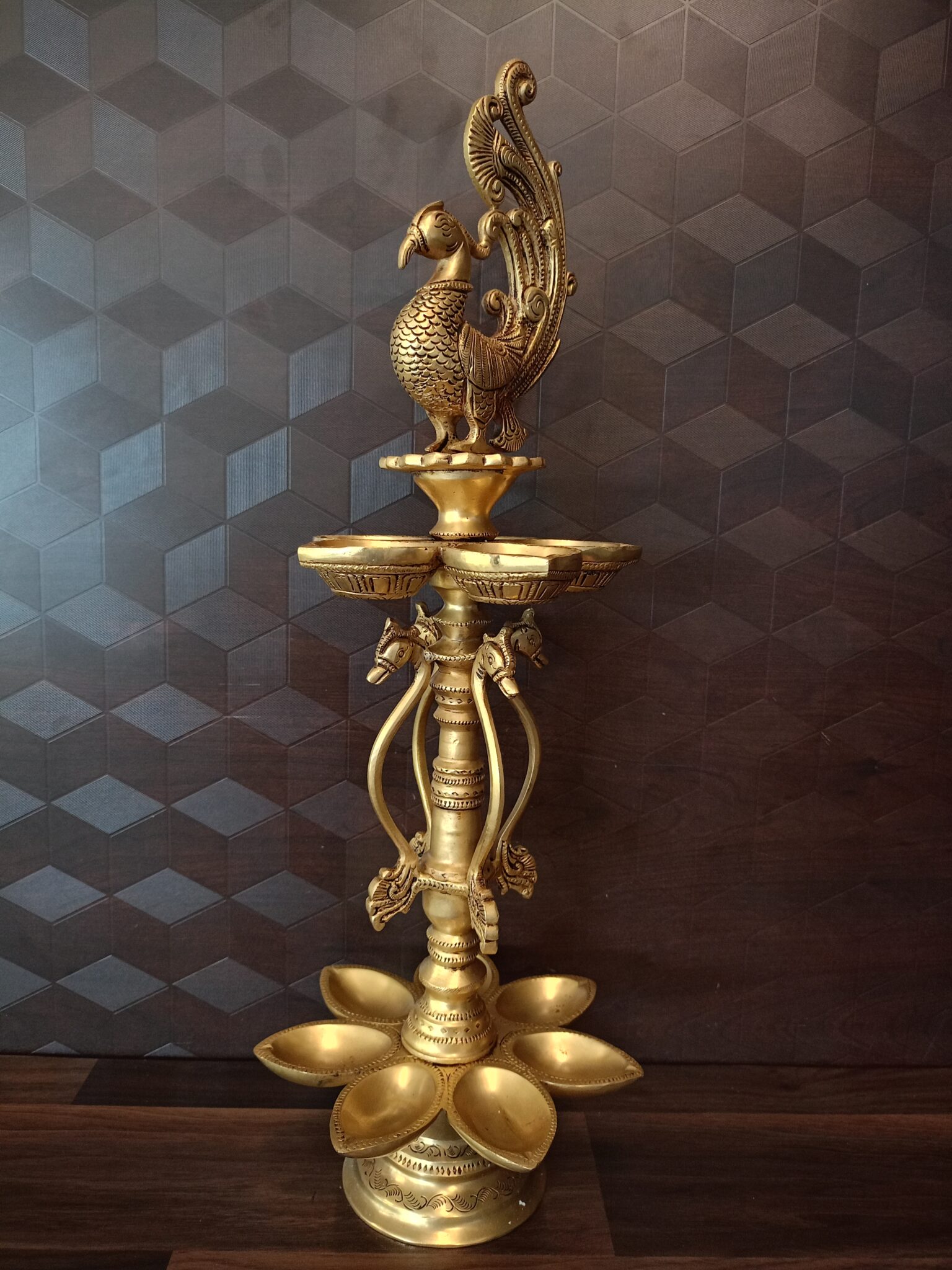 Brass Two Layer of Peacock Lamp with 12 Wicks :