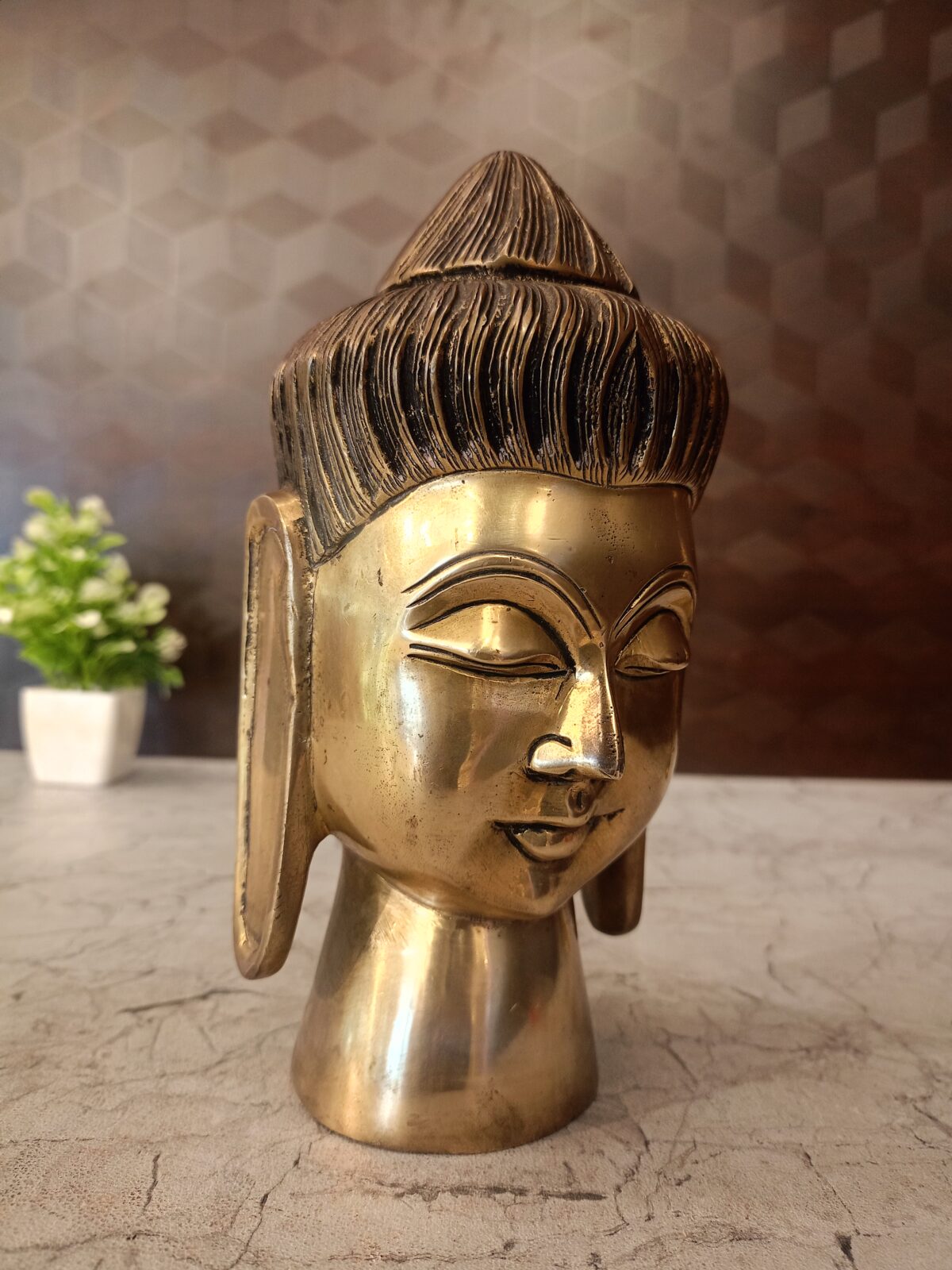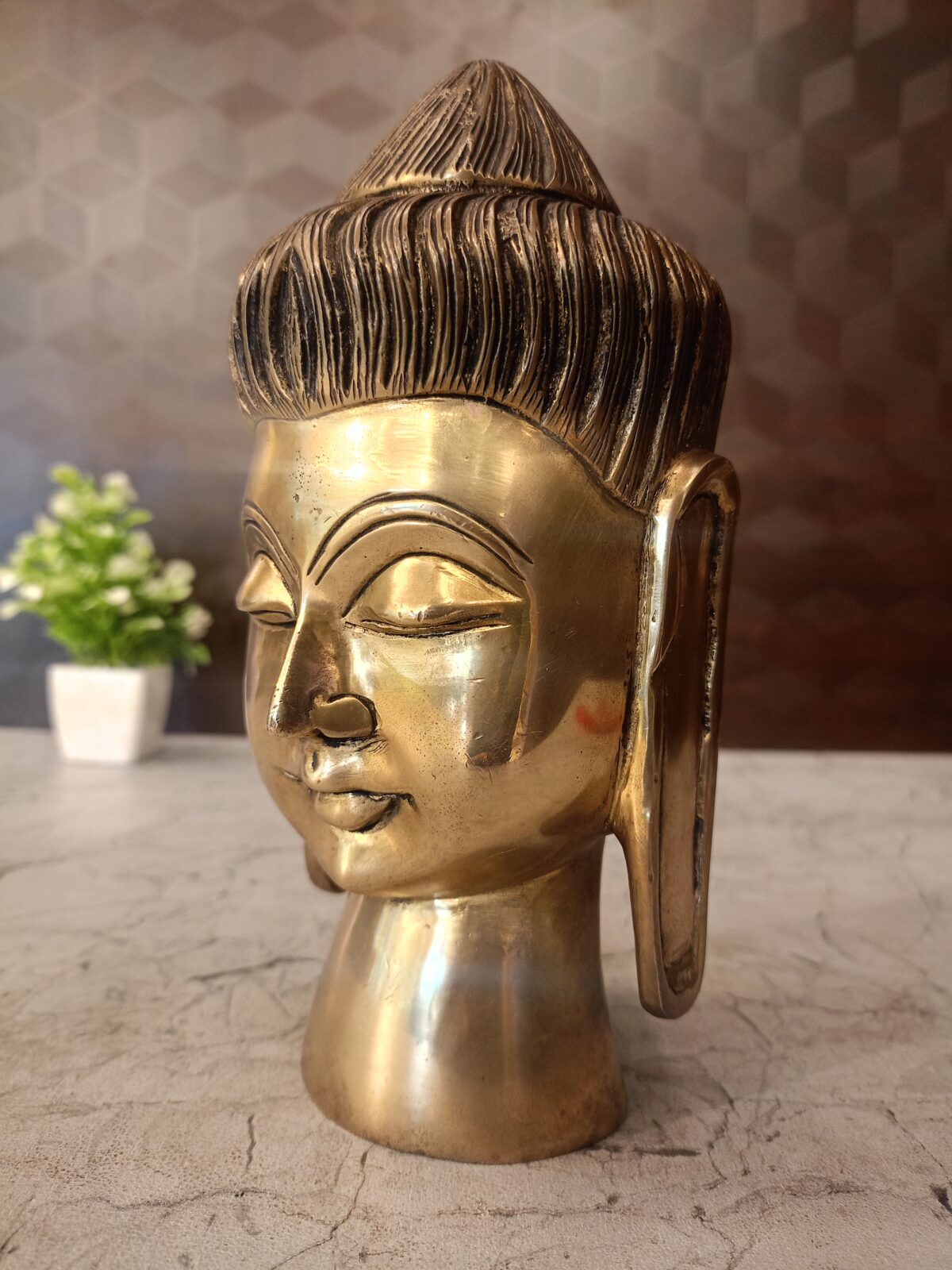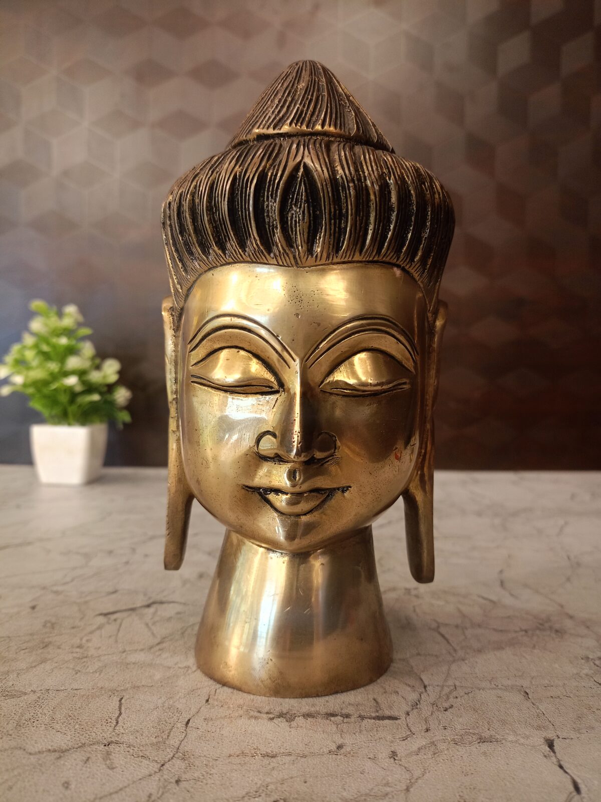 - Enlightenment and Wisdom: The Buddha head, with the characteristic cranial bump (Ushnisha), represents the vast wisdom the Buddha attained upon enlightenment.