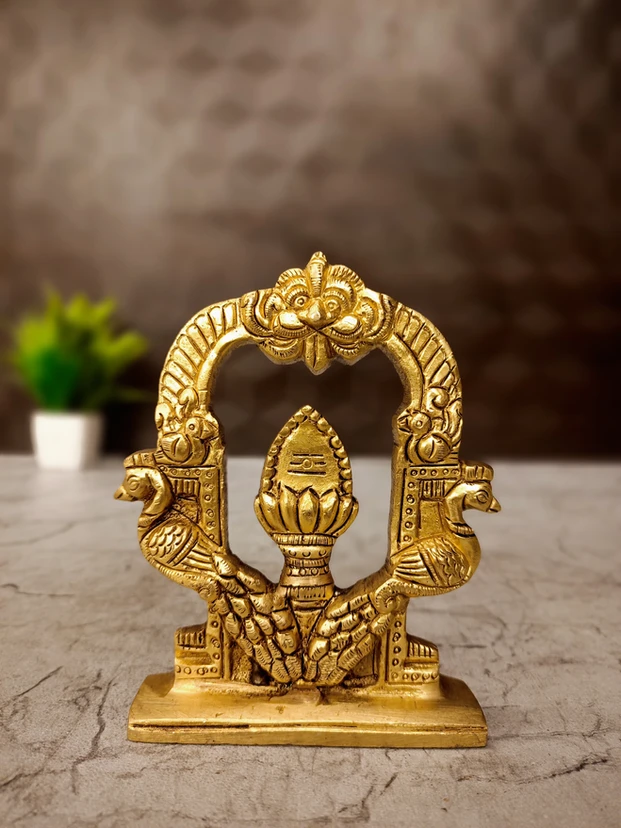 The Traditional Brass Peacock With Arch Vel 4.5 Inch is made using premium-quality solid brass, ensuring durability, strength, and long-lasting beauty. Brass has always been considered one of the most auspicious metals in Indian culture and is widely used for pooja items because of its sacred significance and ability to attract positive vibrations.